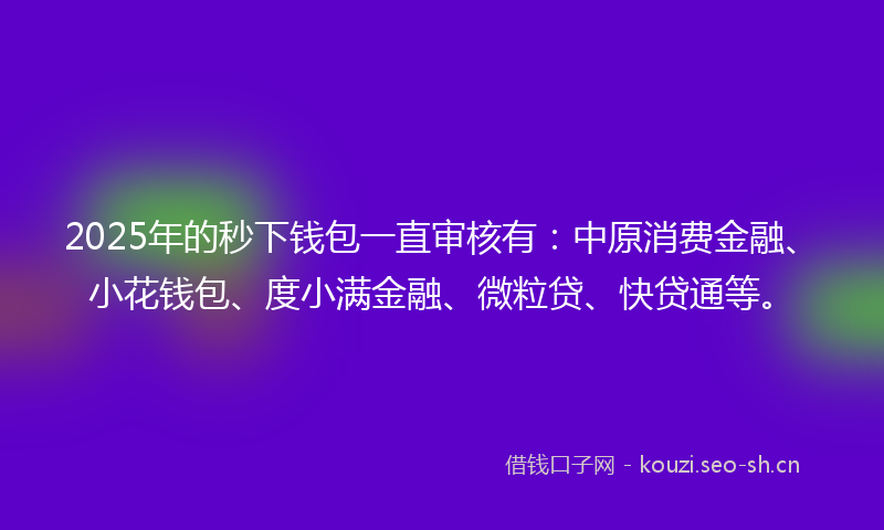 2025年的秒下钱包一直审核有:中原消费金融、小花钱包、度小满金融、微粒贷、快贷通等。