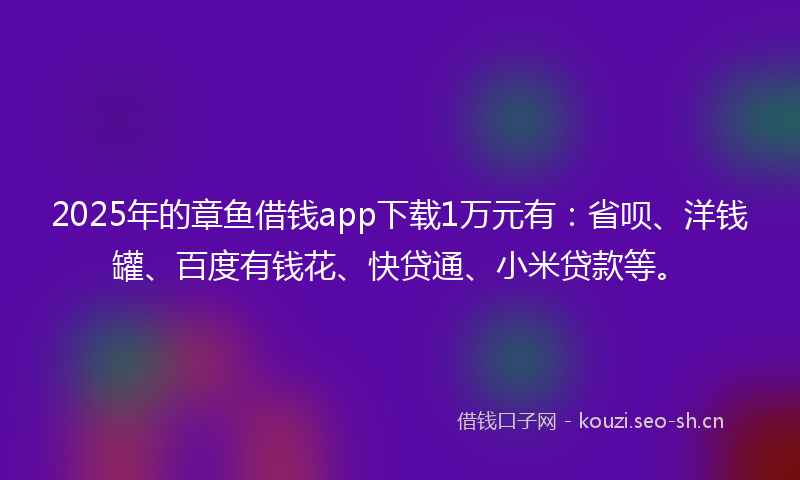 2025年的章鱼借钱app下载1万元有:省呗、洋钱罐、百度有钱花、快贷通、小米贷款等。