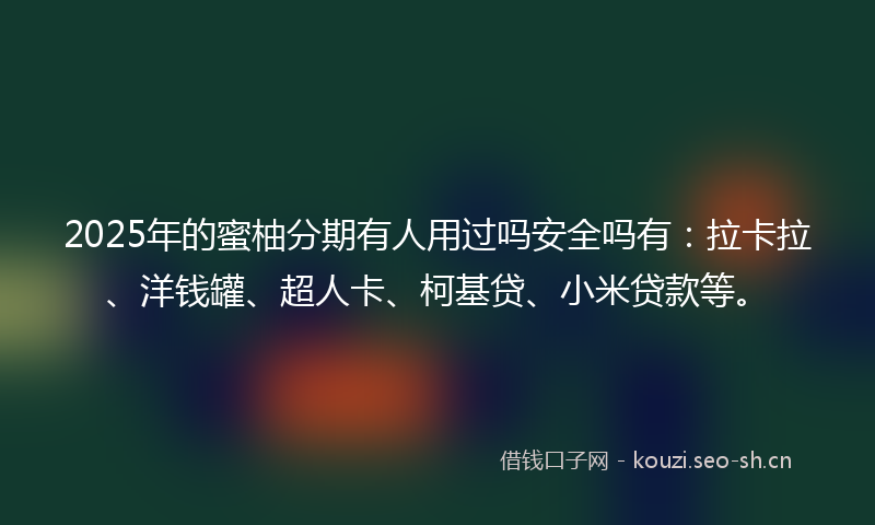 2025年的蜜柚分期有人用过吗安全吗有:拉卡拉、洋钱罐、超人卡、柯基贷、小米贷款等。