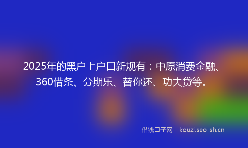 2025年的黑户上户口新规有:中原消费金融、360借条、分期乐、替你还、功夫贷等。