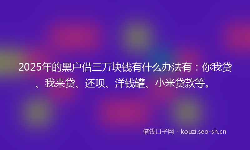 2025年的黑户借三万块钱有什么办法有:你我贷、我来贷、还呗、洋钱罐、小米贷款等。