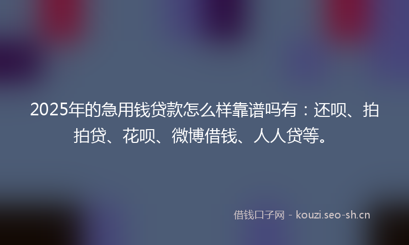 2025年的急用钱贷款怎么样靠谱吗有:还呗、拍拍贷、花呗、微博借钱、人人贷等。