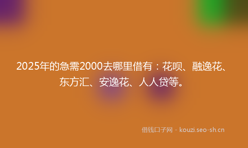 2025年的急需2000去哪里借有:花呗、融逸花、东方汇、安逸花、人人贷等。