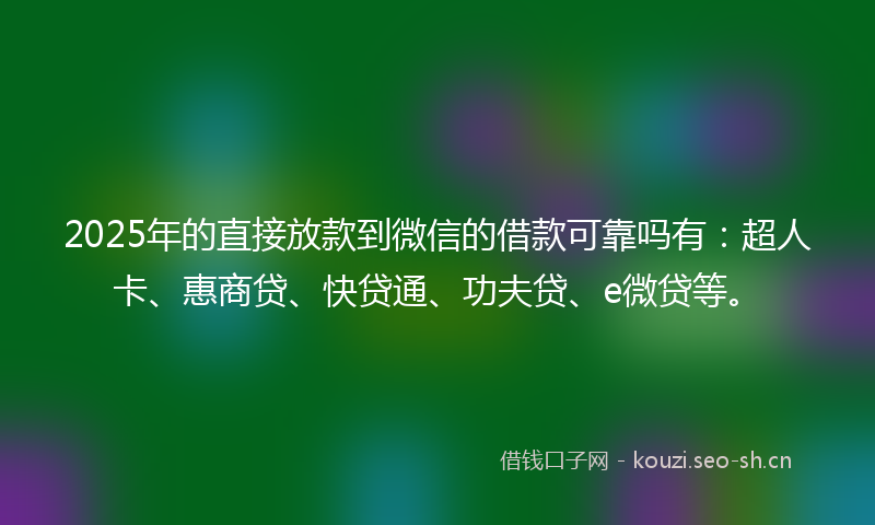 2025年的直接放款到微信的借款可靠吗有:超人卡、惠商贷、快贷通、功夫贷、e微贷等。