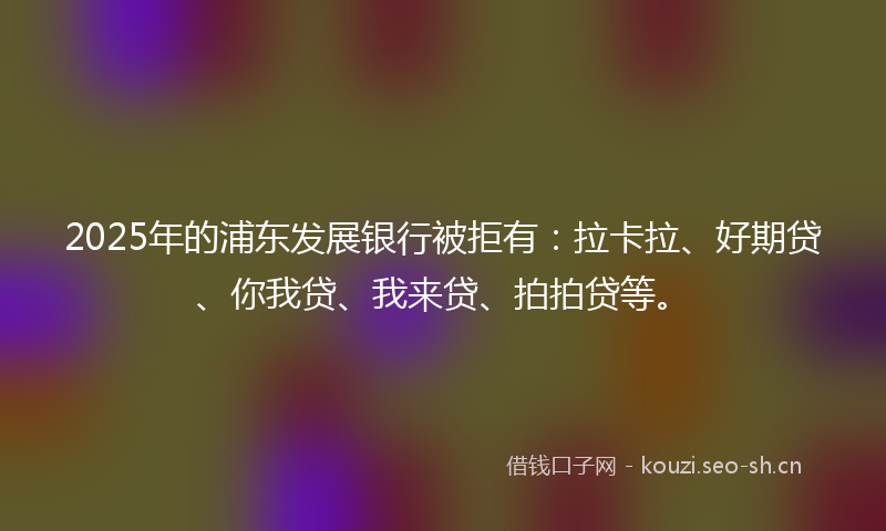 2025年的浦东发展银行被拒有:拉卡拉、好期贷、你我贷、我来贷、拍拍贷等。