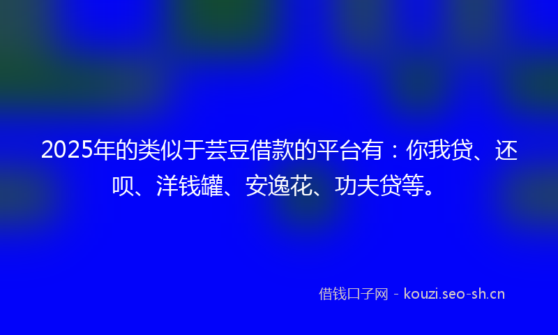 2025年的类似于芸豆借款的平台有:你我贷、还呗、洋钱罐、安逸花、功夫贷等。