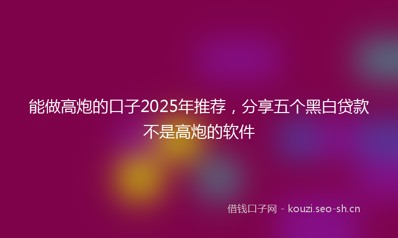 能做高炮的口子2025年推荐,分享五个黑白贷款不是高炮的软件