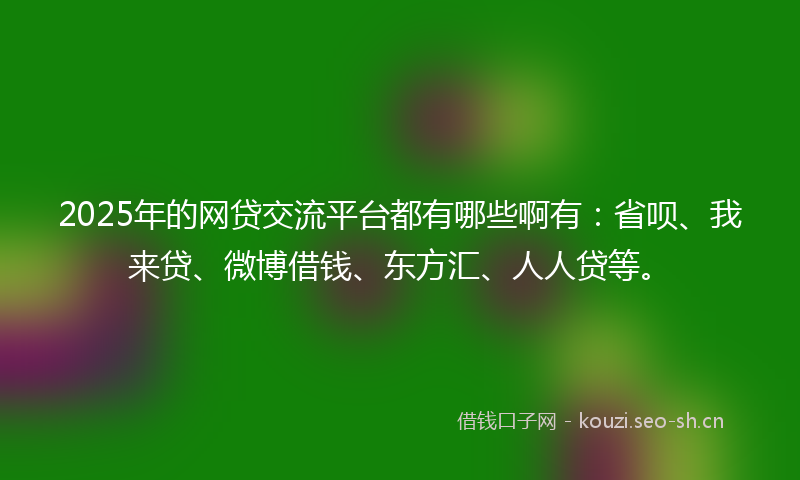 2025年的网贷交流平台都有哪些啊有:省呗、我来贷、微博借钱、东方汇、人人贷等。