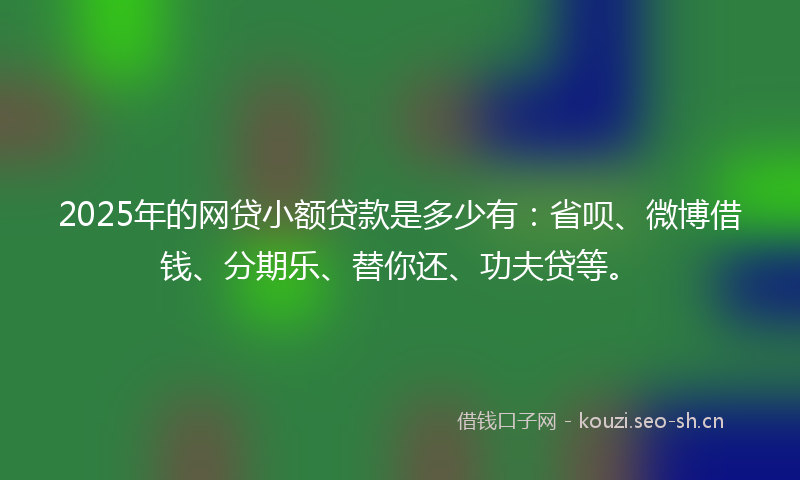 2025年的网贷小额贷款是多少有:省呗、微博借钱、分期乐、替你还、功夫贷等。