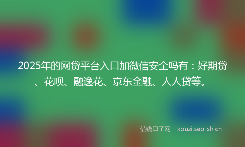 2025年的网贷平台入口加微信安全吗有:好期贷、花呗、融逸花、京东金融、人人贷等。