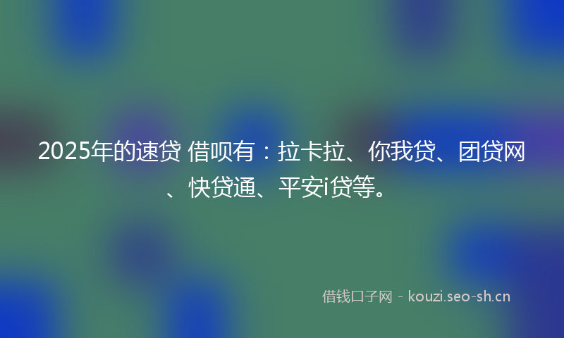 2025年的速贷 借呗有:拉卡拉、你我贷、团贷网、快贷通、平安i贷等。