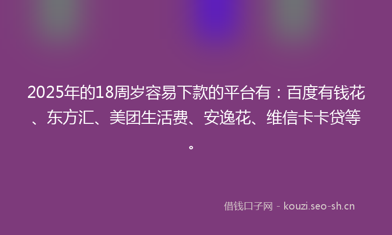 2025年的18周岁容易下款的平台有:百度有钱花、东方汇、美团生活费、安逸花、维信卡卡贷等。
