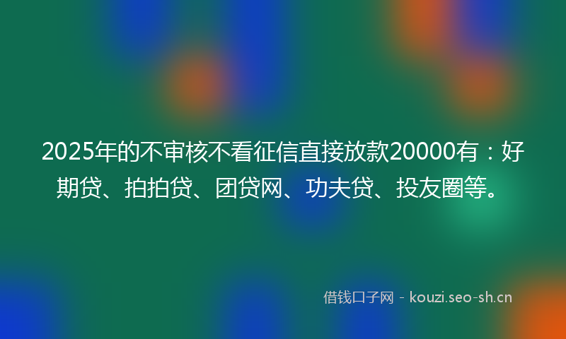 2025年的不审核不看征信直接放款20000有:好期贷、拍拍贷、团贷网、功夫贷、投友圈等。