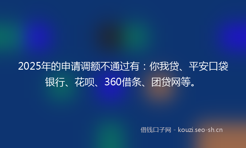 2025年的申请调额不通过有:你我贷、平安口袋银行、花呗、360借条、团贷网等。