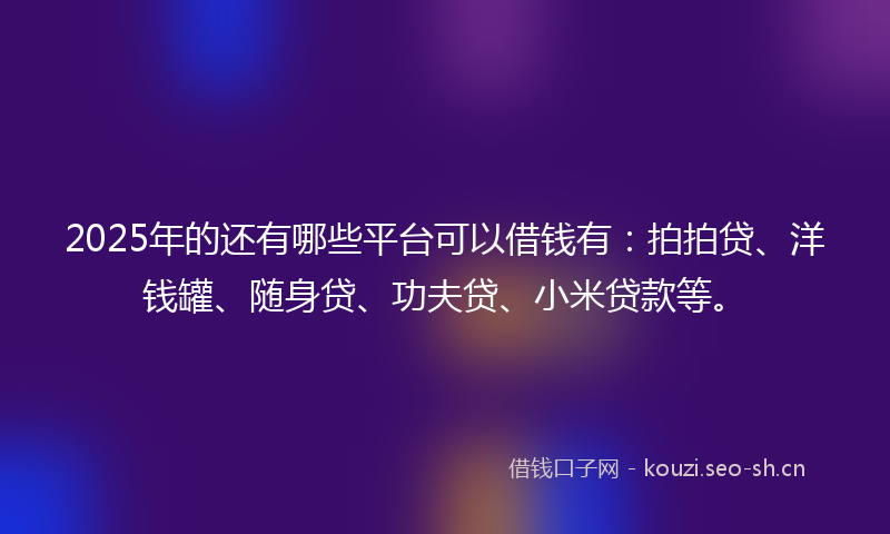 2025年的还有哪些平台可以借钱有:拍拍贷、洋钱罐、随身贷、功夫贷、小米贷款等。