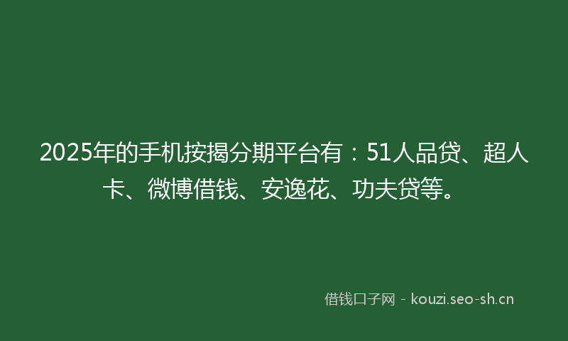 2025年的手机按揭分期平台有:51人品贷、超人卡、微博借钱、安逸花、功夫贷等。