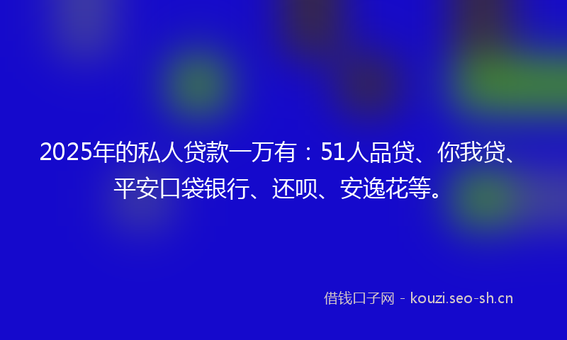 2025年的私人贷款一万有:51人品贷、你我贷、平安口袋银行、还呗、安逸花等。