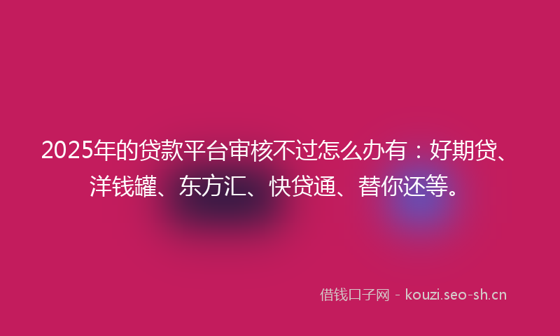 2025年的贷款平台审核不过怎么办有:好期贷、洋钱罐、东方汇、快贷通、替你还等。