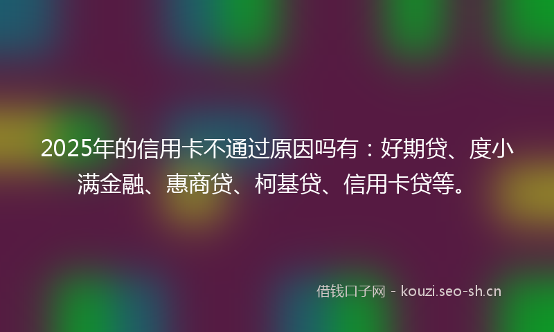 2025年的信用卡不通过原因吗有:好期贷、度小满金融、惠商贷、柯基贷、信用卡贷等。