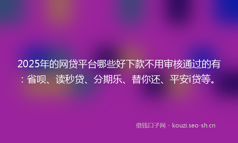 2025年的网贷平台哪些好下款不用审核通过的有:省呗、读秒贷、分期乐、替你还、平安i贷等。