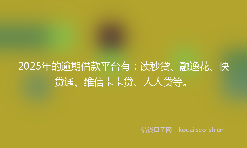 2025年的逾期借款平台有:读秒贷、融逸花、快贷通、维信卡卡贷、人人贷等。